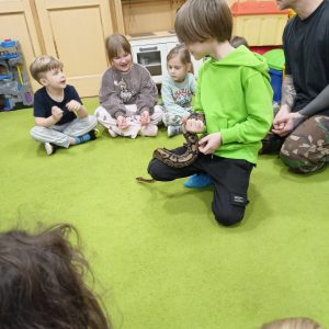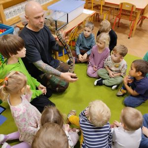 Nasze aktualności Lekcja przyrody na żywo 12 grudnia, 2025 Dzisiaj tata Alberta z grupy 3 poprowadził dla wszystkich przedszkolaków „Lekcję przyrody na żywo”. Bohaterami byli: wąż, ślimak i pająk pochodzący z Afryki. Poprzedni Zajęcia z dogoterapii Nowsze Święty Mikołaj Zobacz również Wizyta w Lotniczym Pogotowiu Ratunkowym 30 maja, 2025 Dzień otwarty 1 lutego, 2024 Warsztaty przyrodnicze o pszczołach 14 października, 2024